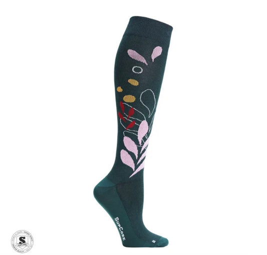 Støttestrømper økologisk bomull grønnblomstret