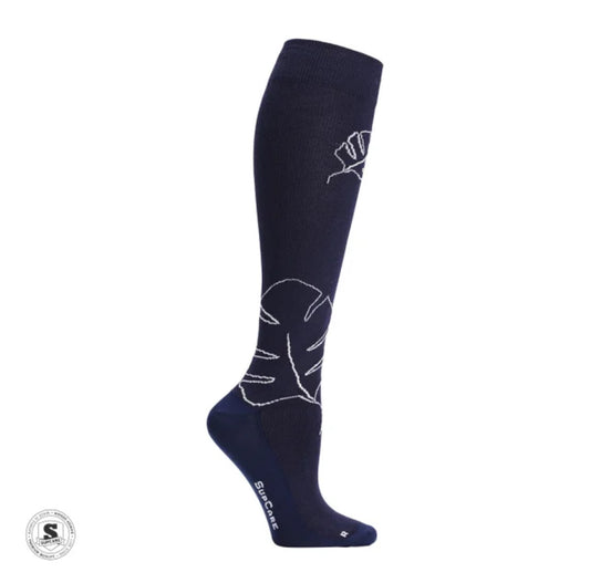 Støttestrømper økologisk bomull monstera marineblå
