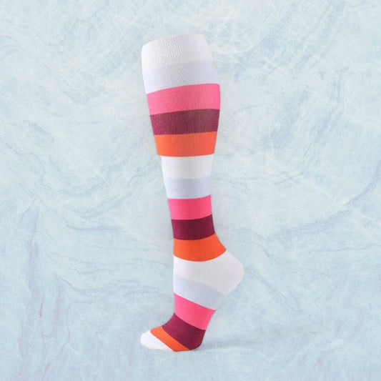 Støttestrømpe stripes fuchsia/oransje